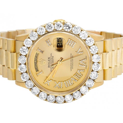 Rolex DayDate 18k Gold 6.75cts Diamonds 18238| 36MM | Diamond Roman Gold Dial