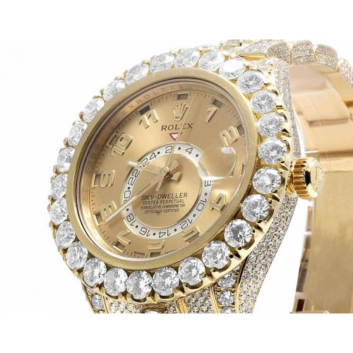 18k Rolex Sky Dweller 326938 Yellow Gold Diamond Watch 39.7 Ct