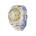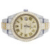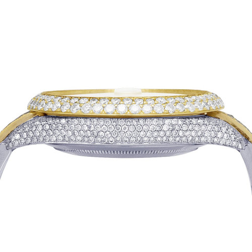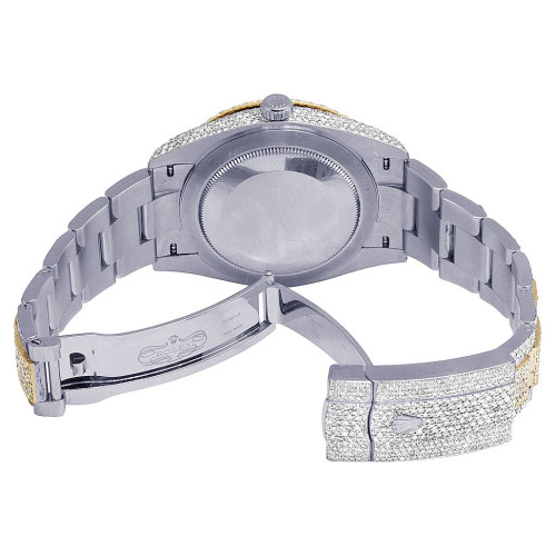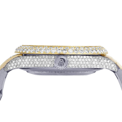 All diamonds on the band pave set in an incredible even and close setting for an amazing shine. Diamonds are set on the original case and Yellow Gold/ Steel two-tone oyster bracelet with a new style buckle.