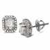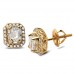 14K Emerald Baguette Diamond Earrings - Emerald Halo (1.00ct). Metal type selectable.