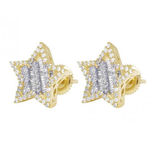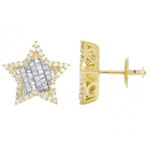 14K Gold Baguette Diamond Star Earrings 13MM .75 CT
