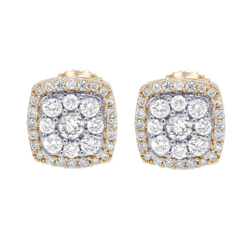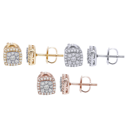 Simple and stylish, this pair of studs can magnify any look. Crafted in 10K Yellow, Rose, White Gold, these earrings feature a square halo design that glistens with 0.5CT genuine diamonds. These round-cut diamonds are elegantly set in a cluster setting surrounded by a halo thus forming an 8mm frame. All shimmering diamonds have the clarity of VS2-SI1 and color of G-H. These 0.3" studs are secured with a screw-back closure and weigh approximately 1.5 grams.