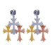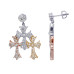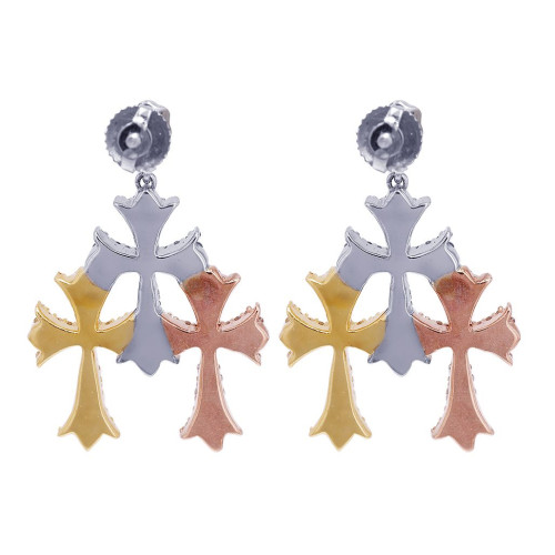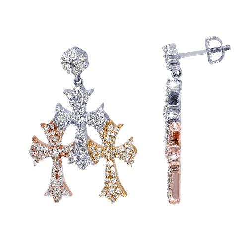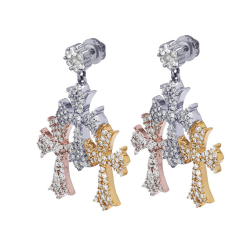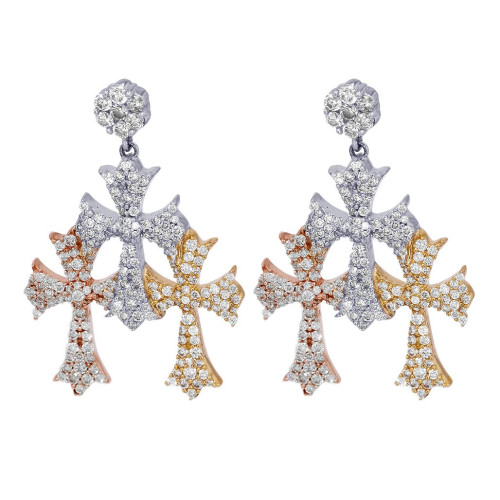 Tri Color Cross Drop Diamond Earrings 2CT Gold 1.2"