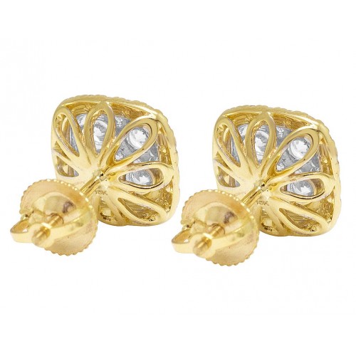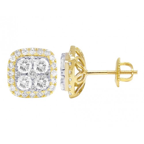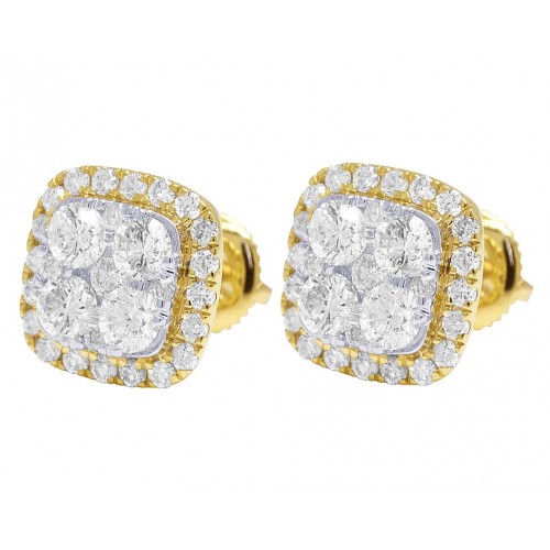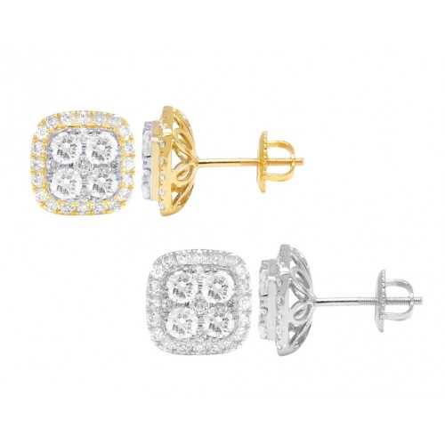 14K Square Halo Cluster Diamond Earrings 10mm 1.85 CT