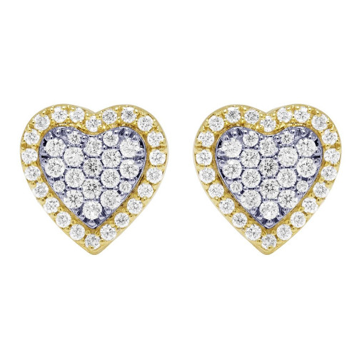 Heart-Shaped 1ct Diamond Stud Earrings 14K Gold 9MM