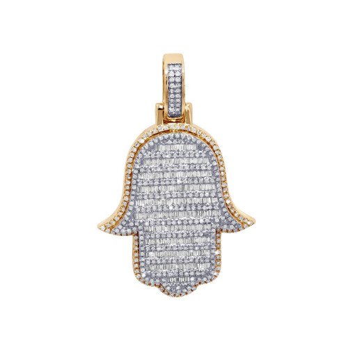 Baguette Diamond 1.75CT Hamsa Pendant 14K Yellow-White Gold 1.8"